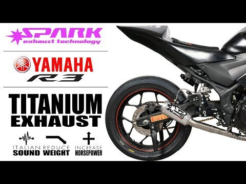 Spark Exhaust Yamaha R3 "GP" Full Exhaust System (WSBK Evolution). Titanium silencer with stainless mid-pipe and stainless racing header. The full system has been designed starting from the best sizing for collectors in order to optimize gas delivery. Collector has been created with the best construction technologies and structural details to ensure top reliability. Handcrafted in Italy. Ultra lightweight approximately 5.25 lbs. Dyno Tested for maximum horsepower increase over stock, 109 db. Non-Homologated Racing Version for Maximum Performance. For perfect performance, throttle response and durability, ECU remapping is recommended. *Does not include removable DB Killer.