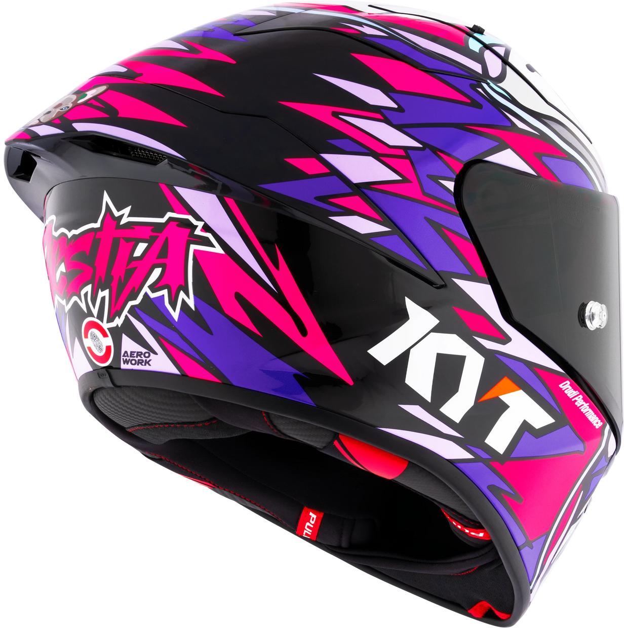Designed and developed in Italy with the most advanced digital tools, the KX-1 helmet has undergone rigorous testing by Ducati Corse Factory rider Enea Bastianini to ensure it can perform at the pinnacle of the sport. It boasts industry-leading aerodynamics for reduced drag and peak race performance thanks to over three years of wind tunnel and track testing to optimize aerodynamics in various riding positions and lean angles. The KX-1 boasts enhanced peripheral field of view (92 deg and 210 deg) for unobstructed vision, and meets the highest FIM Standard. The interior of the KX-1 features a liner that has been expertly crafted with premium materials that lead in form and function.
